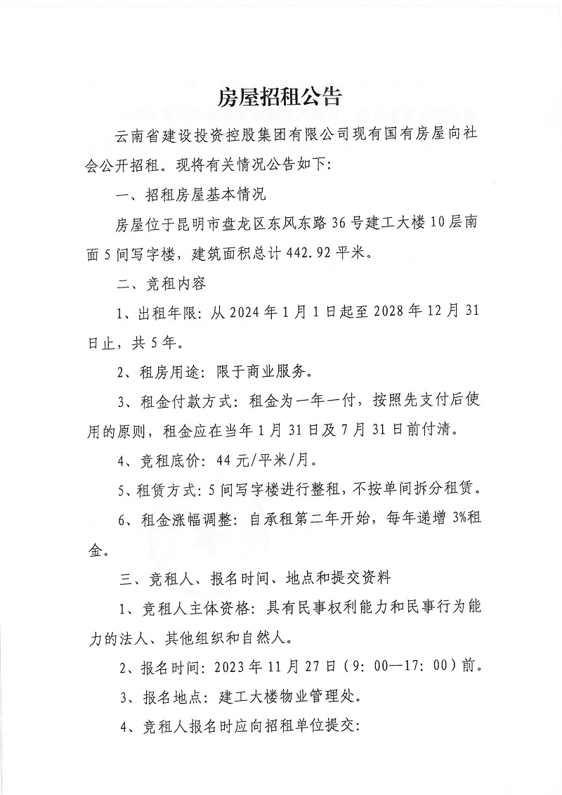 關于建投集團所屬建工大樓10層5間寫字樓的招租公告