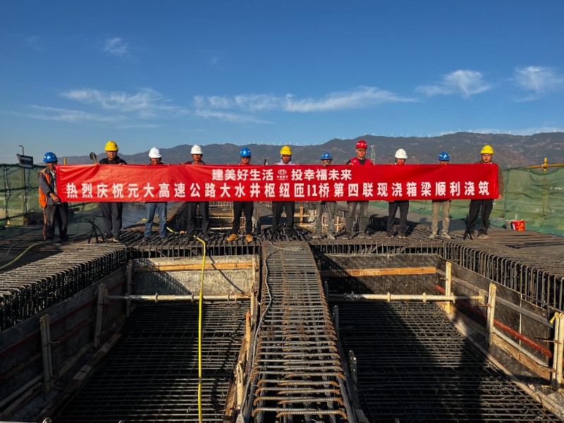 1月1日,元大高速大水井樞紐互通匝I1號橋第四聯(lián)現(xiàn)澆箱梁順利完成澆筑。