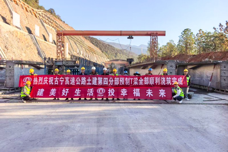 12月14日,隨著土建四分部達瓦大橋8-5#T梁的順利澆筑,古寧高速四分部先行建設段3633片T梁全部預制完成,項目橋梁工程全面進入橋面系施工階段。
