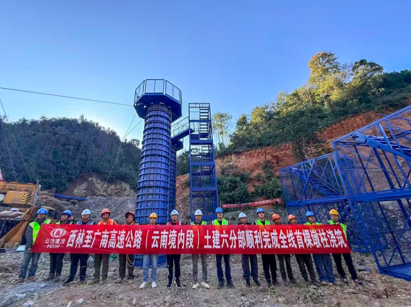11月29日,西林至廣南高速公路(云南境內段)控制性工程——龍蚌大橋右幅2#墩柱順利完成混凝土澆筑,此墩柱為全線首根,標志著該橋梁工程下部結構施工進入新階段。