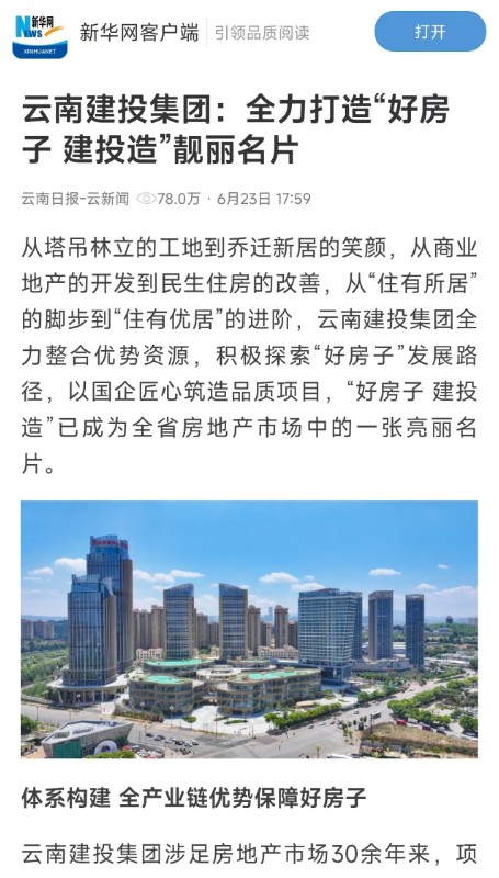 近日,新華網(wǎng)、云南網(wǎng)以《云南建投集團:全力打造“好房子 建投造”靚麗名片》為題,報道集團全力整合優(yōu)勢資源,積極探索“好房子”發(fā)展路徑,以國企匠心筑造品質項目,擦亮“好房子 建投造”的靚麗名片。