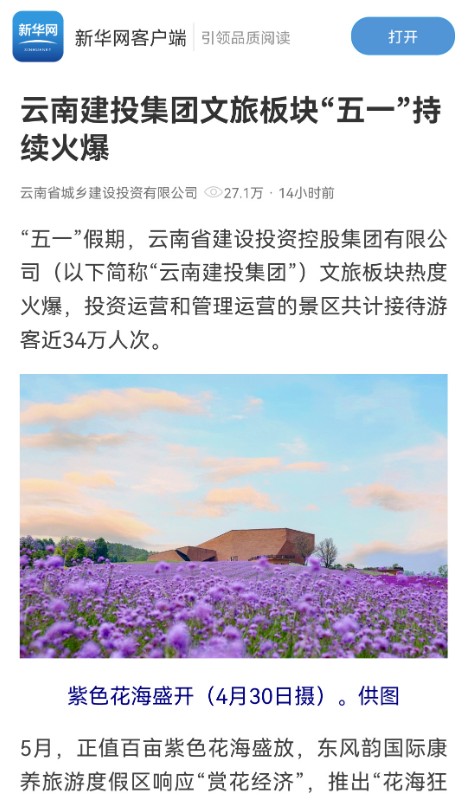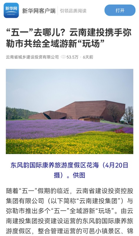 今年“五一”假期,集團(tuán)文旅康養(yǎng)板塊火爆出圈,各大景區(qū)、酒店打造多元場(chǎng)景、多彩活動(dòng),喜迎四海賓朋。期間,中央廣播電視總臺(tái)、新華網(wǎng)、云南網(wǎng)等媒體聚焦集團(tuán)文旅康養(yǎng)板塊,廣泛開(kāi)展宣傳報(bào)道。據(jù)不完全統(tǒng)計(jì),“五一”出游集團(tuán)文旅康養(yǎng)項(xiàng)目相關(guān)資訊全網(wǎng)曝光總量超3100萬(wàn)次。