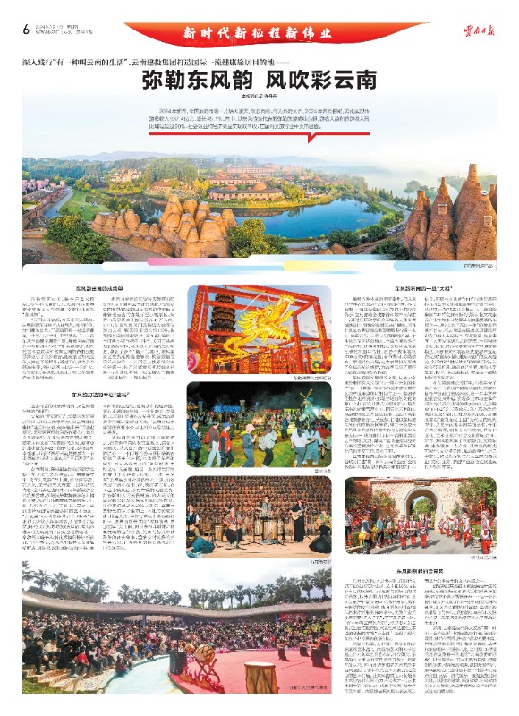 3月1日,《云南日報》6版“新時代 新征程 新偉業”欄目,整版發布《彌勒東風韻 風吹彩云南》一文,報道集團深入踐行“有一種叫云南的生活”,打造國際一流健康旅居目的地。