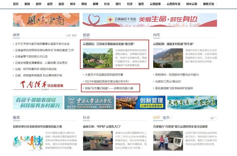 推介會舉辦期間,多家媒體和網(wǎng)絡大V打卡東風韻。新華網(wǎng)、中國網(wǎng)、環(huán)球時報、鳳凰新聞客戶端、云南網(wǎng)、今日頭條、開屏新聞、搜狐新聞、新浪新聞、昆明信息港等眾多媒體平臺的宣傳報道和轉(zhuǎn)發(fā),形成了“有一種叫云南的生活”——云南建投集團實踐展示暨文旅康養(yǎng)產(chǎn)業(yè)推介會的強大宣傳報道陣容。