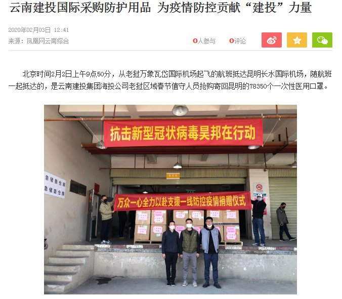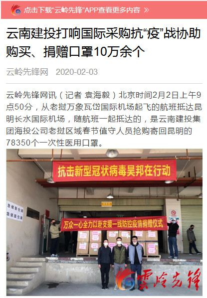 多家媒體報道集團國際采購防護用品為疫情防控貢獻“建投力量”