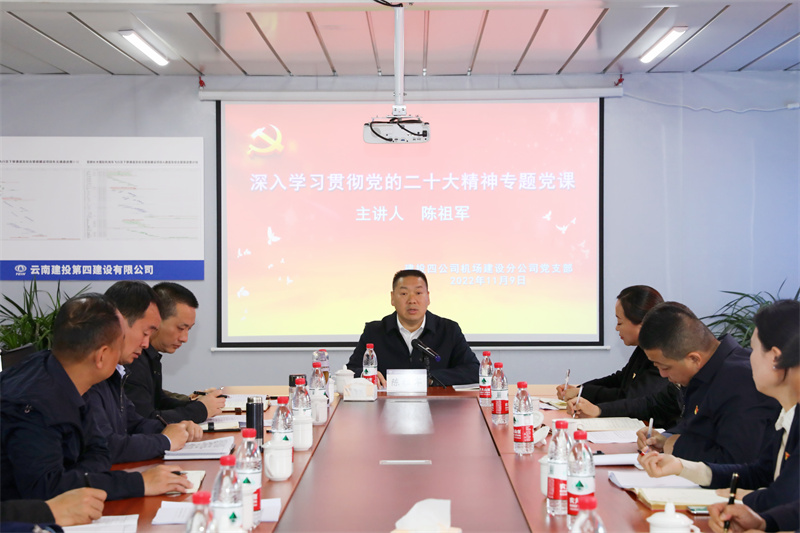11月9日,集團公司黨委書記、董事長陳祖軍到所掛聯的四公司機場建設分公司黨支部宣講黨的二十大精神。他強調,要把學習宣傳貫徹黨的二十大精神作為集團當前和今后一個時期的首要政治任務,充分認識學習宣傳貫徹黨的二十大精神的重大深遠意義,全面學習、全面把握、全面落實黨的二十大精神,確保學習宣傳貫徹工作走深走實,推動黨的二十大精神在集團落地生根、開花結果,切實將思想偉力轉化為內生動力,加快推動集團內涵式高質量發展。
