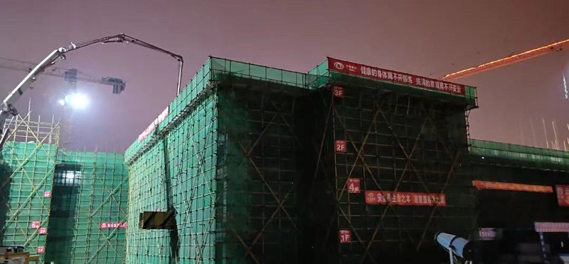 民大附中項目自中標到交付使用只有短短一年的工期,在項目工期緊任務重及建設工作存在諸多不確定影響因素的情況下,許多人對項目能否按期交付使用持有懷疑態(tài)度,但民大附中項目部沒有畏首畏尾,而是憑借“超越自我,敢為人先”的拼搏精神,毅然決然全身心投入到項目建設工作中。施工人員不足,便積極協(xié)調(diào)分包單位加派人手;建筑材料、機械跟不上建設進度,便提前統(tǒng)籌策劃組織材料、機械進場;項目工期緊張,便加班加點、挑燈夜戰(zhàn)。據(jù)項目負責人李金龍介紹,民大附中項目部一直堅持到春節(jié)假期前最后一天才放假回家過年,到大年初七,項目96名管理人員便全部到崗,大年初十便有300余名施工人員返崗到位,目前項目現(xiàn)場每天有600余名工人在緊鑼密鼓開展結構施工,快馬加鞭抓進度、爭分奪秒趕工期。