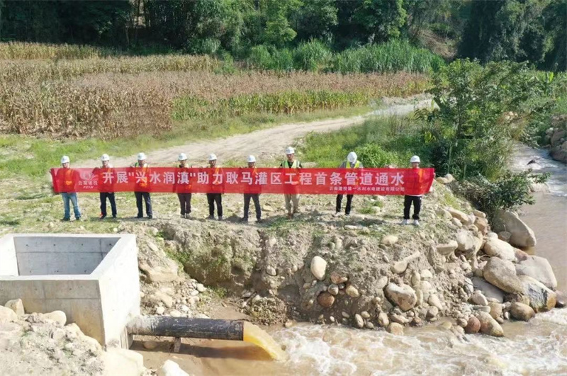經(jīng)過30余天的艱苦奮戰(zhàn),總長為7.5千米的芒款支管最終于2022年7月15日實(shí)現(xiàn)通水目標(biāo),目前已累計(jì)為下游工廠供水6600立方米。