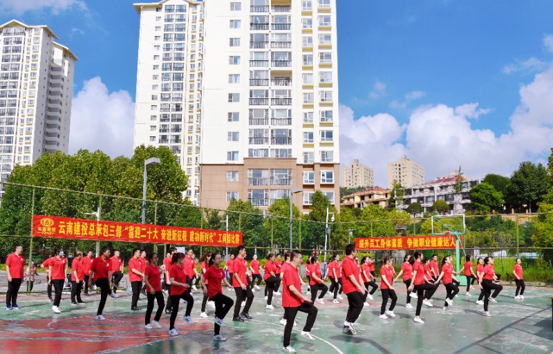 每日工間操是總承包三部打造的“工”字品牌工程。自2021年7月1日開展每日工間操以來,總承包三部本部全體職工積極參與民族舞、現代舞工間操,第九套、第八套廣播體操等各類工間操,倡導積極健康的工作方式,增強全員體質,提高全員健身水平,實現了“全民健身,人人參與”,以開展全員健身共建“幸福建投”,賦能集團內涵式高質量發展。