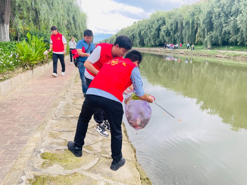 8月13日,九公司第二、第八直管部黨支部聯合“雙報到”社區保山市隆陽區青華街道宋家墩社區總支部,在東河流域官田大橋河道沿線開展“保護母親河,做東河衛士”志愿服務活動,對河道漂浮物、河岸垃圾進行全面清理。25名黨員和團員參加活動。