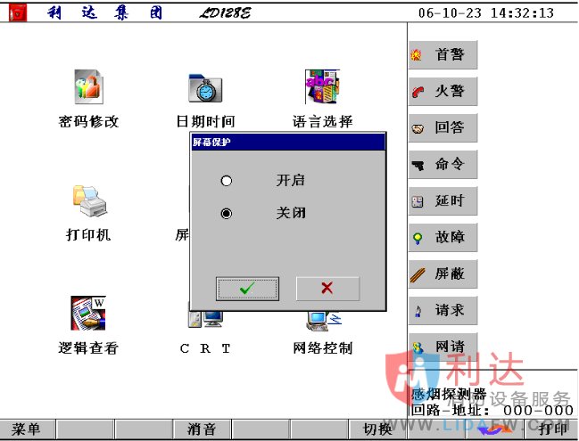 利達(dá)LD128EII消防主機屏幕保護(hù)設(shè)置